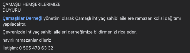 Çevrenizde ihtiyaç sahibi aileleri derneğimize bildirmenizi rica eder,